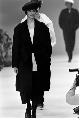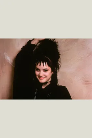 From left: Winona Ryder as Lydia Deetz; a look from the Comme des Garçons 1985 Fall RTW collection; Catherine O’Hara as Delia Deetz