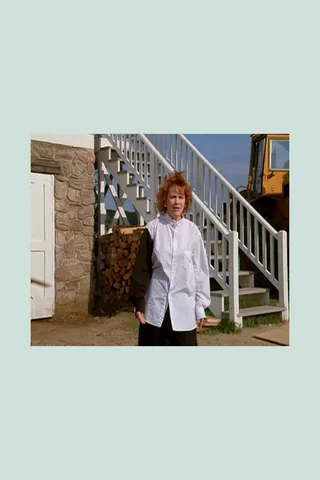 The film surreals around the grounding straight act of Barbara and Adam Maitland (played by Geena Davis and Alec Baldwin), a couple who—after their car plunges into a river during their staycation—are fated to haunt their Connecticut house for 125 years (without a vacuum cleaner). Fashion-wise, Adam’s look is preppy and dry, like the guys you fooled around with in college. His checked-shirt-and-chinos combo has the comforting, unintrusive familiarity of a Caesar salad on room service, but there’s nothing for your wardrobe to really latch on to, unless you’re extremely Gap. It is okay, on occasion, to have an extremely Gap day, but I would look back with regret on an extremely Gap life. His wife, the strikingly suburban, unflavored yogurt that is Barbara Maitland, appears in a Ganni-esque prairie dress two decades ahead of its time. With its dainty floral pattern, the dress is desperately trying to outgrow its own drabness, its mousey-little-housey indoor comfort. Rather than punch it up—with…I dunno…an absolutely killer clutch? A stupidly expensive shoe? Not her grandmother’s hair?—she accessorizes with a dull tabard the color of mulch, with pockets ample enough for several microfiber cloths and cans of polish. It is a testament to Davis’s acting that such an astounding beauty can inhabit Barbara’s dairy-fed drudgery, the sexless, midi-length, watered-down Andie MacDowell of it all. Her coolest moment comes from two of her fingers on fire when she realizes she’s dead—burning fingers are a flex, like when you light a match and inhale the flare. I guess you only get one look in the afterlife—my recommendation is to die in the Row—but later in the film, the Maitlands get quasi-resurrected into their wedding outfits. Her dress is classic, but there’s something eternally sharp and tart about a tux with a ruffle shirt (for either gender, come to think of it). It feels like a prom look, an adolescent attempt at adult suave coupled with the latent hope of a hand job. There’s a bit in The Virgin Suicides where there’s a chemical spill and one of the year’s debutante party themes is “Asphyxiation,” the tuxes and dresses bathed in a toxic green hue. It’s a commentary on wealth’s ability to mask trauma, but all I thought was, Pistachio ruffles.