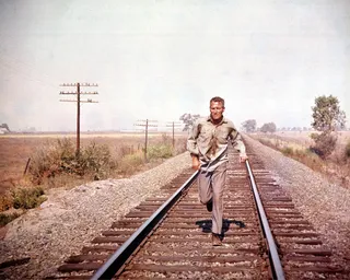 Like that film, Fugitive takes place in the Deep South and presents a web of institutional corruption where members of humanity’s lowest caste are subject to whatever passes for justice at the time, and authorities’ actions are guided more by optics and personal grudges than a sense of fairness. Allen’s story was closely inspired by the case of Robert Elliott Burns, a troubled veteran and drifter whose involuntary role in a grocery-store holdup earned him a similar sentence on a Georgia chain gang. Like Allen, Burns managed to escape and forge a successful life for himself in Chicago, but a letter likely penned by his vindictive wife saw him recaptured and extradited to Georgia, where broken promises from officials and denial of parole forced him to execute an even more daring escape. That’s where their narratives diverge: Burns’s reports of his brutal mistreatment by the justice system earned him renown as a writer (and inspired this motion picture). The controversy sparked by his memoir led to frequent lectures in which he recounted the horrors of chain gangs to an increasingly outraged public; ultimately, Georgia Governor Ellis Arnall commuted his sentence to time served and inaugurated widespread reforms on the state’s prison system. A 1987 TV movie, The Man Who Broke 1,000 Chains, tells Burns’s story without a pseudonym; he’s played by a young Val Kilmer.