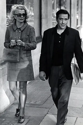 Gena Rowlands and John Cassavetes outside the Dorchester in London, 1969